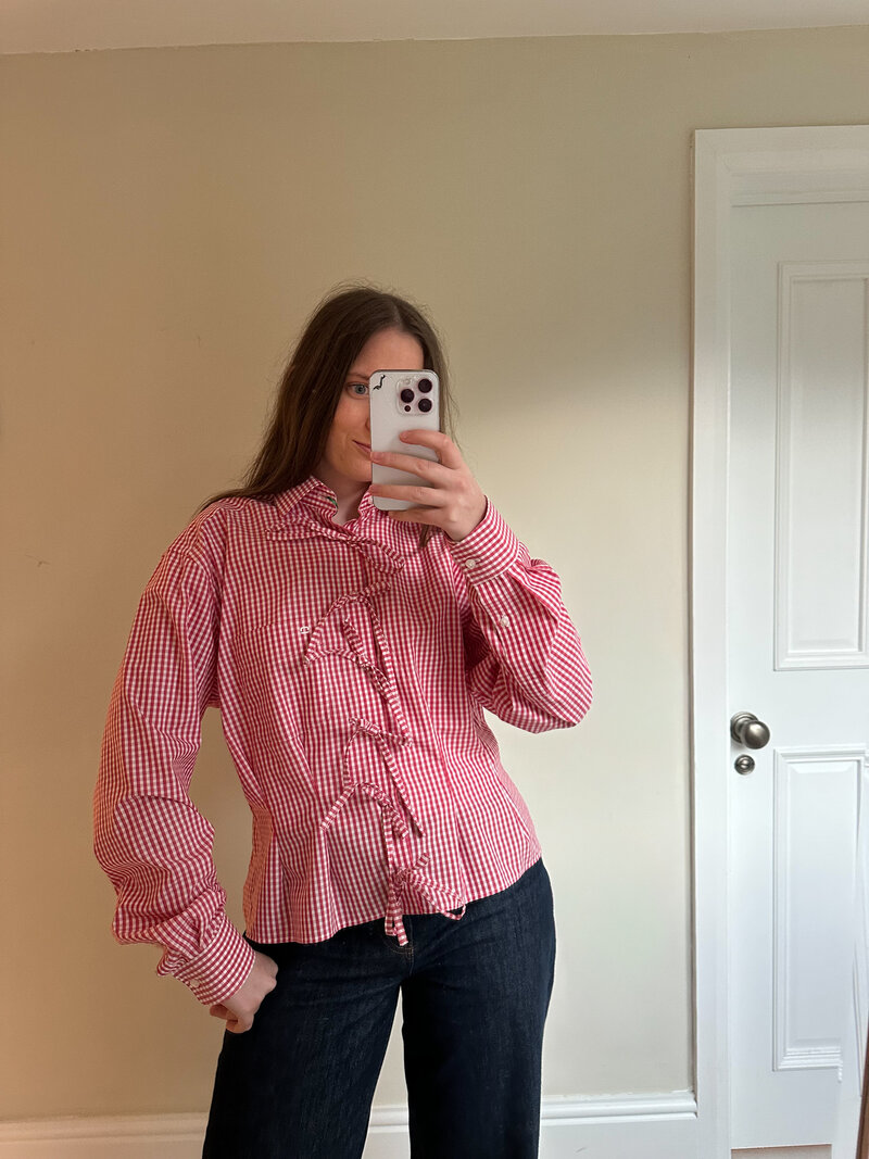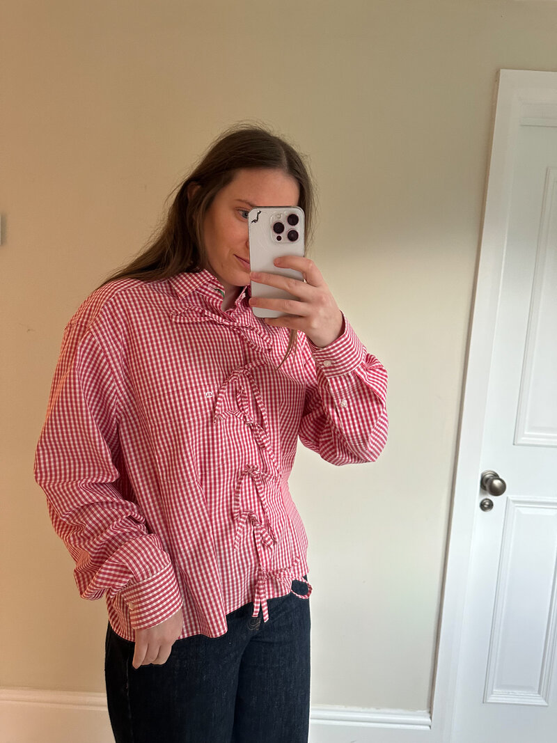 Gaby's usual size is a size 10 so the fit is oversized on her.