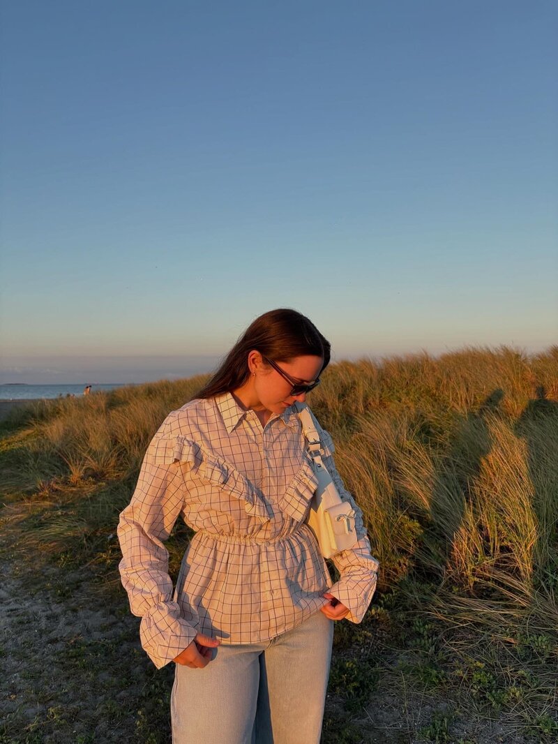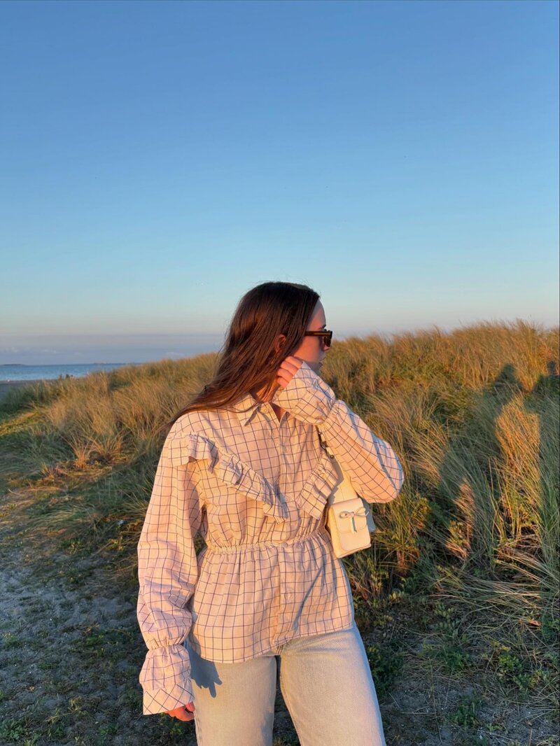 A brand new design with diagonal frill details a nod to western style shirting with a shirred waist for the cinch affect perfect styled with a neck scarve as we transition into these AW months,